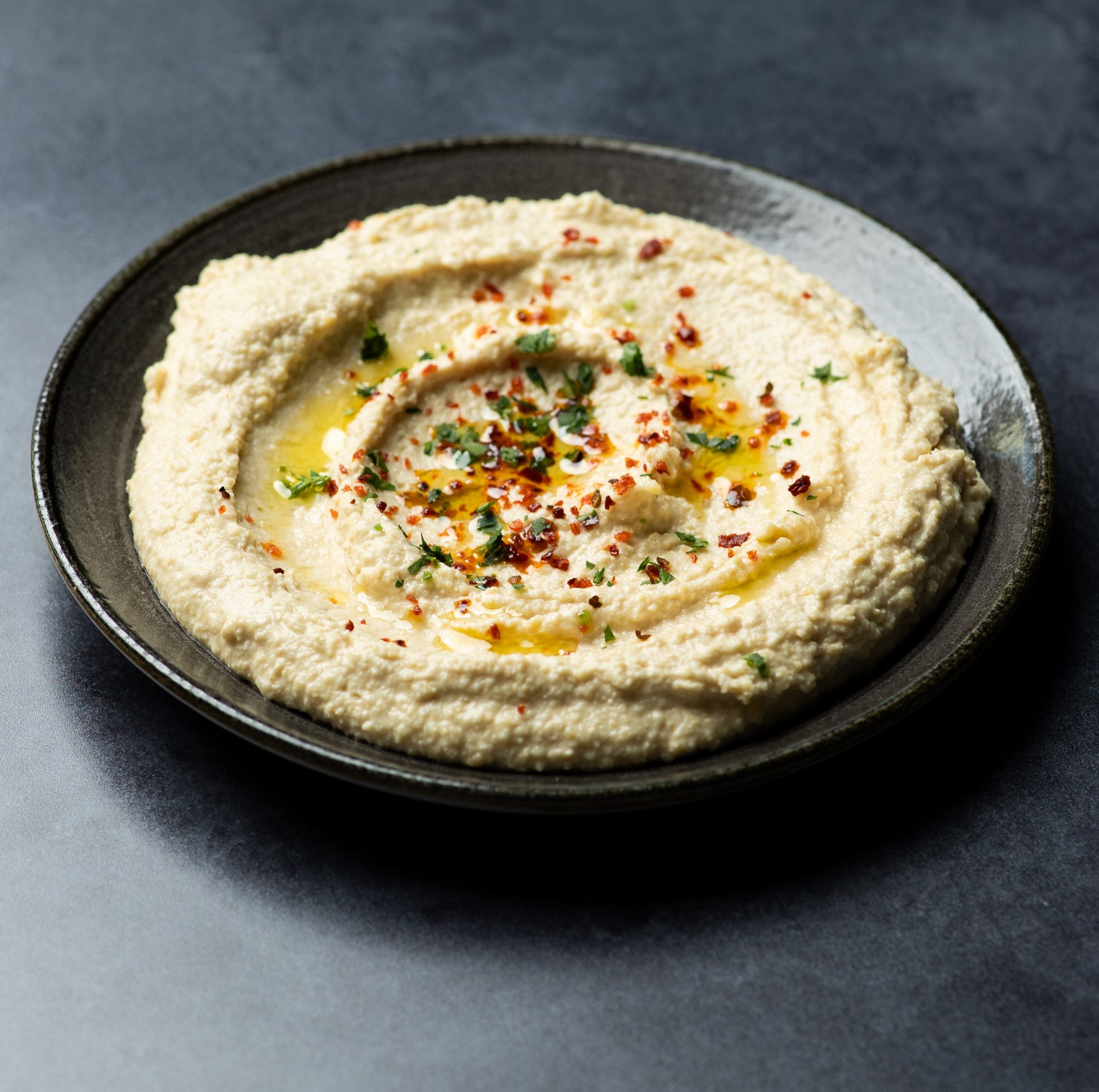 Pursed chickpeas, tahini, garlic and lemon juice |
