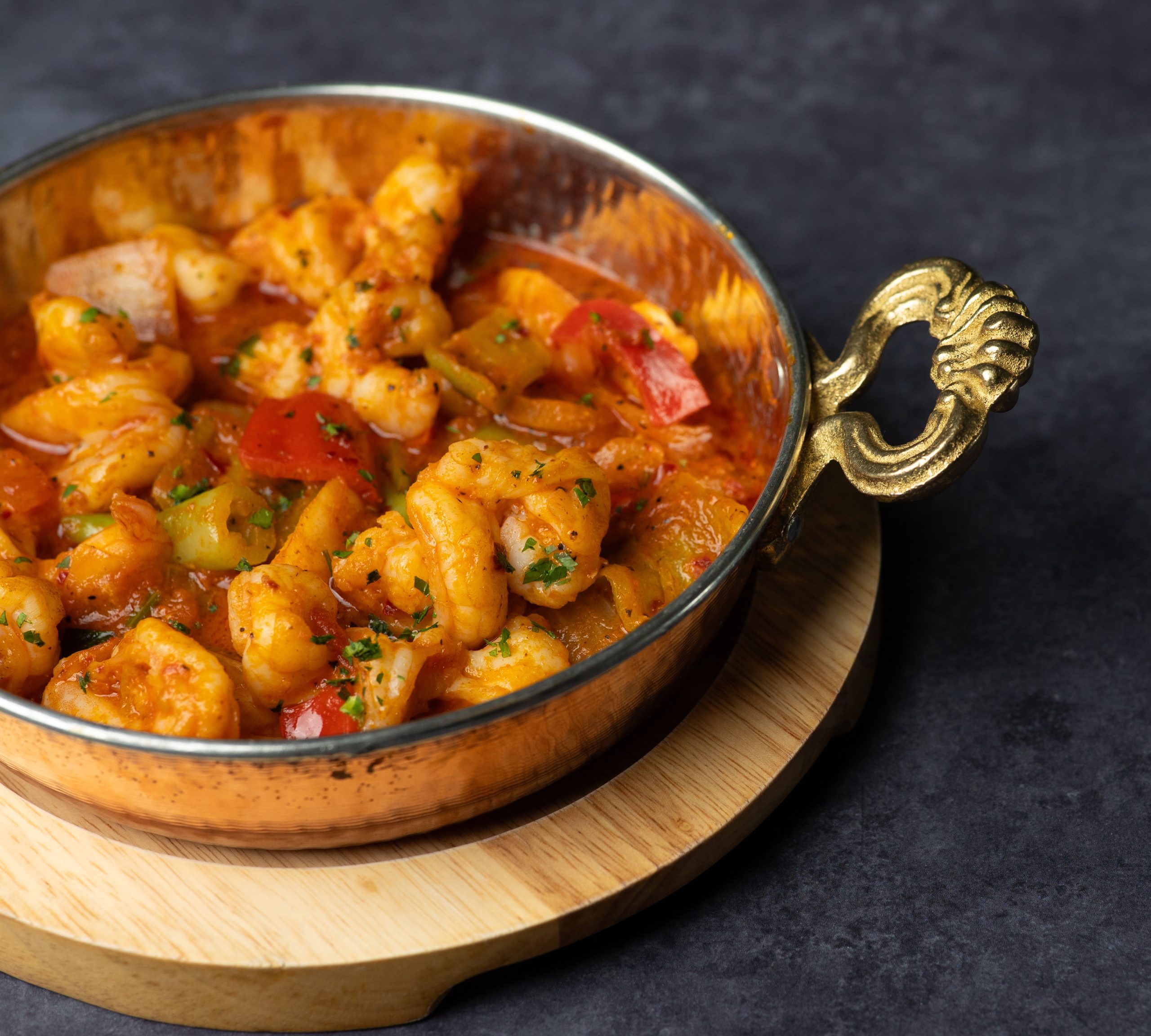 | KING PRAWN CASSEROLE Pan cooked juicy king prawns with peppers, onions and Anatolian sauce. |